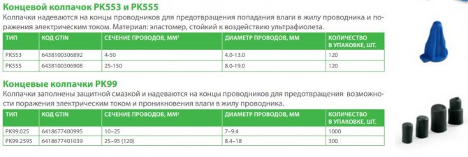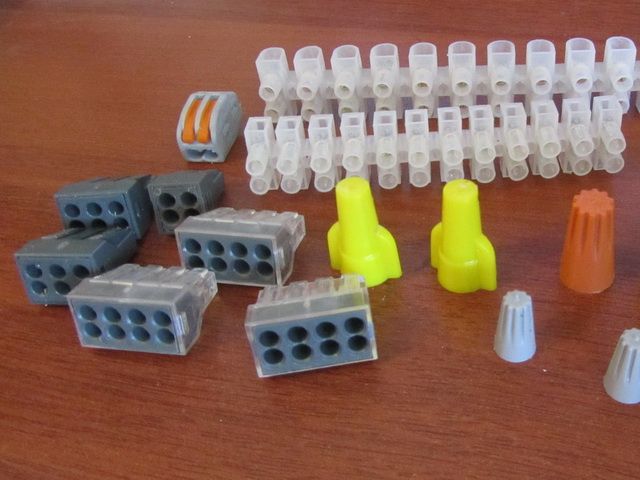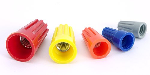 Используются колпачковые соединители из пластика для электропроводки небольшой мощности. Также такие зажимы применяют при монтаже электросетей внутри дома.