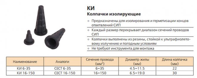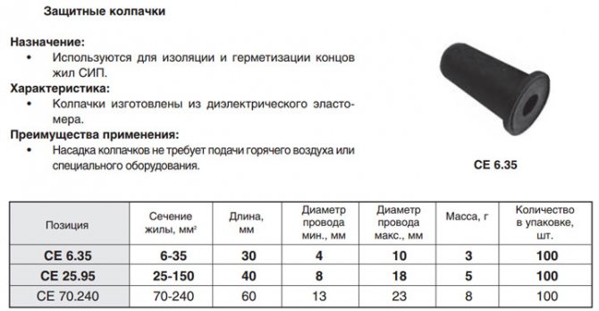 - Е – колпачок, надевается на конец СИП для обеспечения изоляции.