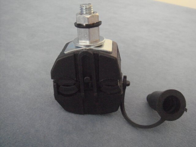 Электрическое соединение осуществляется путем прокола внешней изоляции самонесущего провода зубцами пирамидальной формы, которые при проколе надежно «запечатывают» то место, где вгрызлись в провод, не допускания попадания туда влаги.