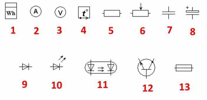 Разобравшись с электрическими схемами, можем переходить к обозначениям указанных на них элементов.