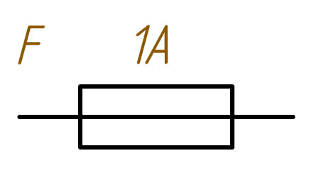 Схематическое изображение плавкого предохранителя. При чтении электрической схемы следует внимательно учитывать все линии и параметры чертежа, чтобы не спутать назначение элемента. Например, предохранитель и резистор имеют незначительные отличия. На схемах силовая линия изображается проходящей через предохранитель, резистор чертится без внутренних элементов.