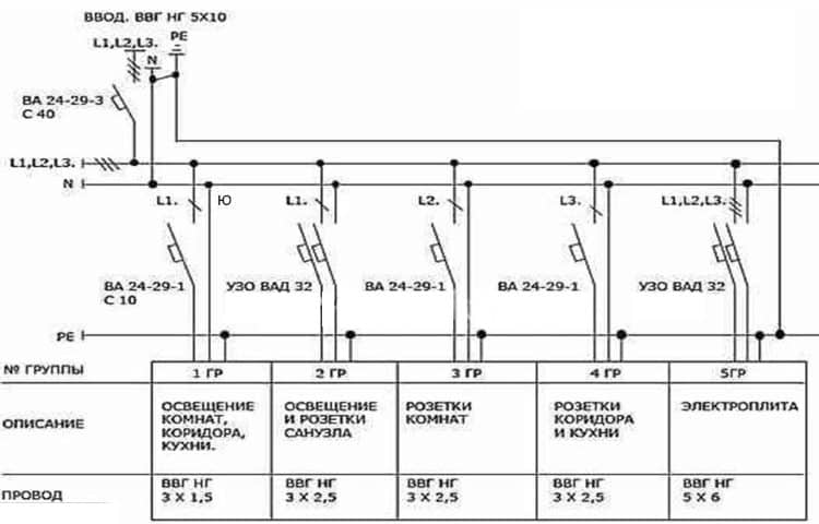 Если на чертеже отображается проводка квартиры, то места расположения осветительных приборов, розеток и другого оборудования указываются на плане. Иногда можно услышать, как такой документ называют схемой электроснабжения, это неверно, поскольку последняя отображает способ подключения потребителей к подстанции или другому источнику питания.