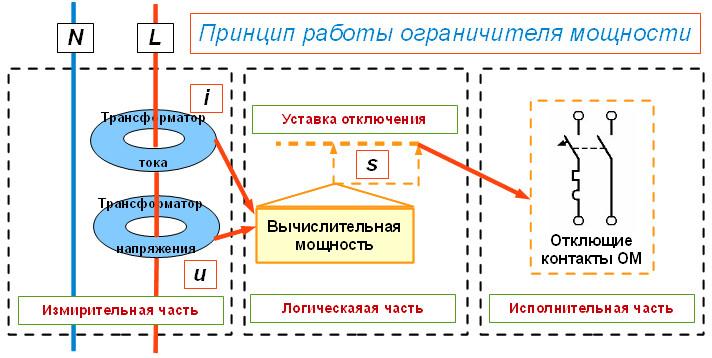 Алгоритм ограничителя мощности непрерывно мониторит процесс работы нагрузки потребителей электрической сети.