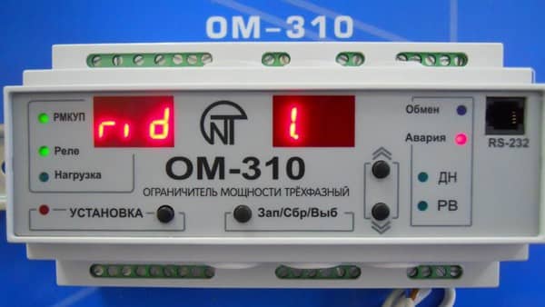 Рассмотрим технические характеристики прибора — ограничитель мощности ОМ-310: