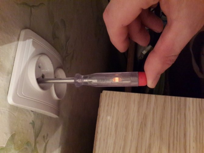 Используя специальный тестер проверяем напряжение во всех розетках, в осветительных приборах, при этом делать нужно резиновых перчатках что бы избежать поражения током.
