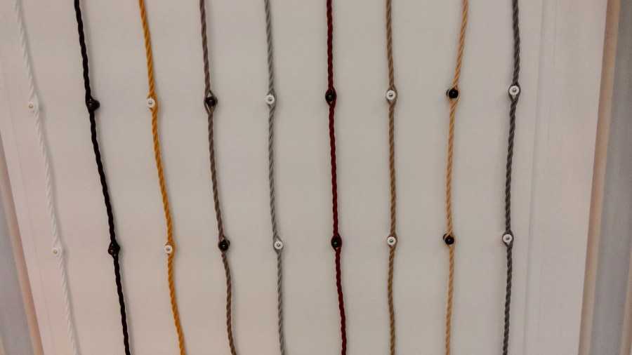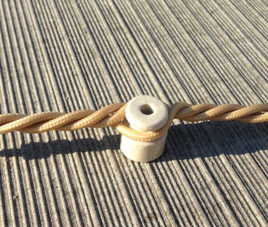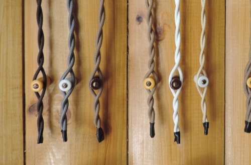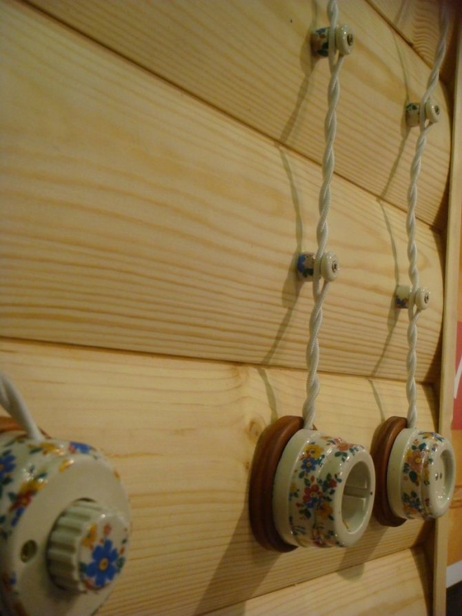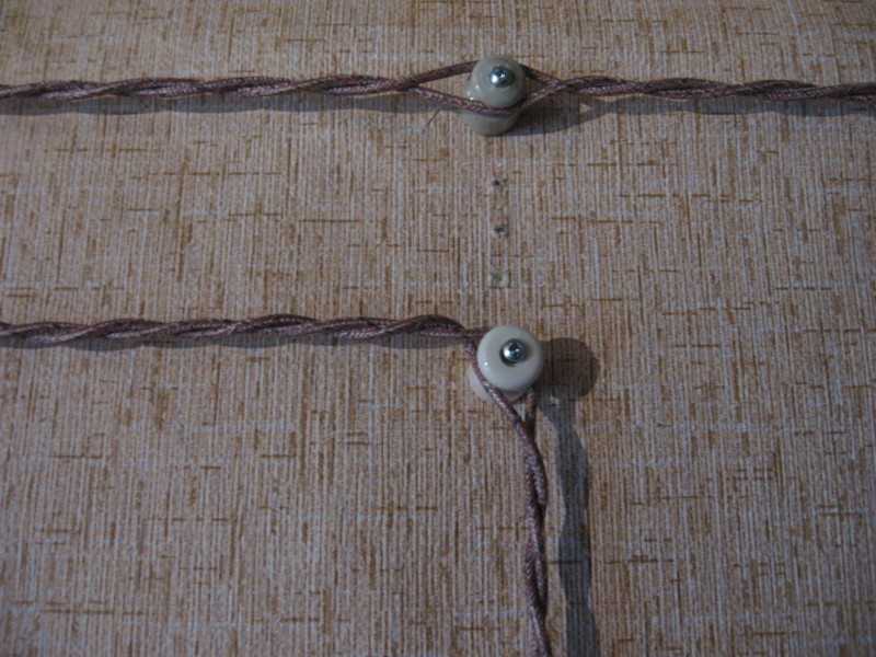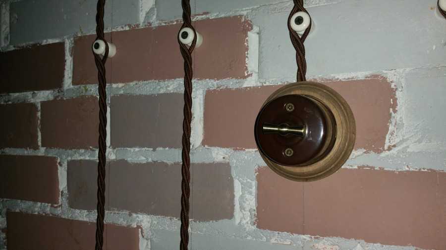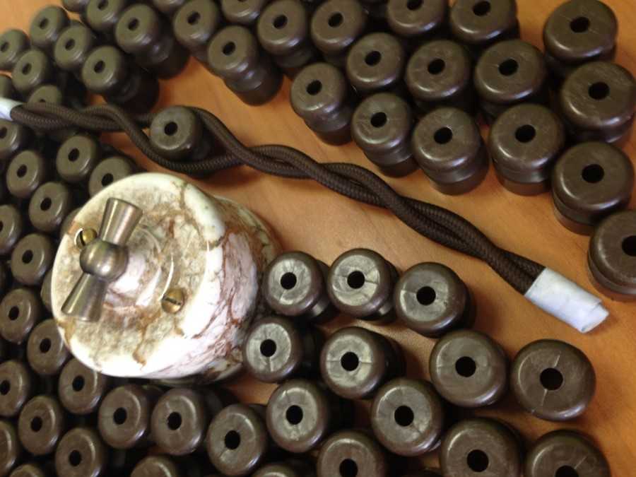 Вся фурнитура сделана из керамики. К слову сказать — один из лучших диэлектриков с точки зрения пожарной безопасности. Организовывать общие жгуты и кабельные короба нет смысла. Винтажный дизайн как раз говорит о том, что чем больше проводов, тем более стильно выглядит помещение.