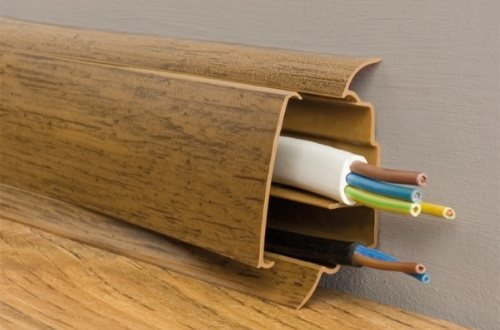 Внешне данный элемент представляет собой стандартный плинтус для декоративной отделки, устанавливаемый в угол между стеной и полом. Но в целях повышения практичности, большинство производителей предлагает электротехнические плинтуса, благодаря которым можно проложить проводку открытого типа к бытовой технике, розеткам, осветительным приборам, теплым полам. Следуя ПУЭ, можно уложить в плинтус кабель для электрификации, кабель слаботочных цепей, то есть, подключить скрытым способом не только розетку на другом краю помещения, но также провести Интернет, кабельное ТВ!