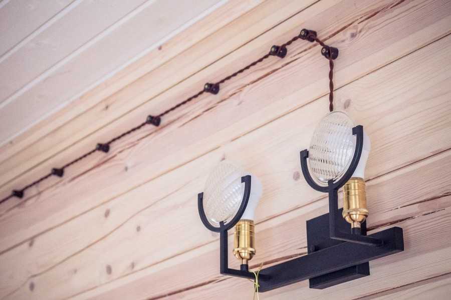 - Главный из них — нет 100% совместимости с дизайном помещения. Если вы не поклонник стиля «винтаж» или «лофт», для экспериментов с открытой проводкой остается разве что гараж.