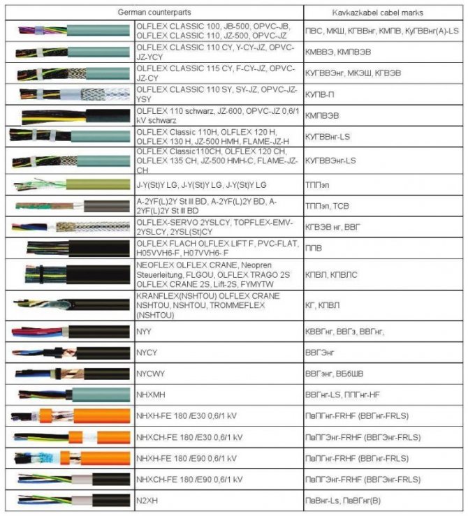 Сегодня таблица маркировки отечественных, а также импортных кабелей насчитывает больше 300 обозначений.