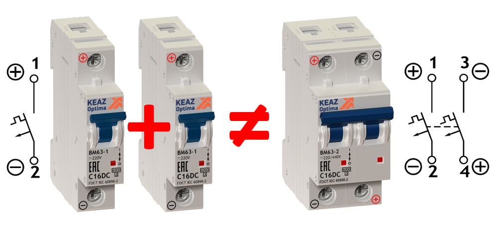 Это значит, что при возникновении неполадок они отключатся одновременно, а в паре независимых друг от друга однополюсных АВ сработает только один автомат. Электрический ток в этом случае по-прежнему будет подаваться в неисправную цепь через включенный прибор, что может стать причиной возгорания проводки. Наглядно про попытки объединения на следующем видео: