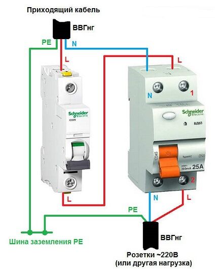 Само по себе устройство защитного отключения не защищает от перегрузок или короткого замыкания. Это возможно только в случае его подключения в сочетании с автоматическим выключателем.