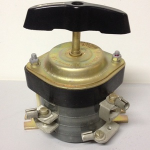 Кулачковый. На корпусе из электроизоляционного материала располагаются подвижные и неподвижные контакты, которые подпираются пружинками и находятся на направляющих штырях (изоляторах). Они упираются в подвижную шайбу, на которой проделаны углубления для этих изоляторов.