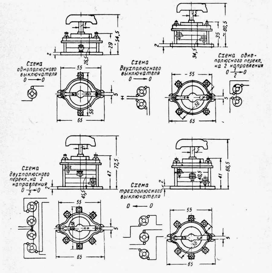 На рисунке 2 показаны схемы разных типов переключателей.