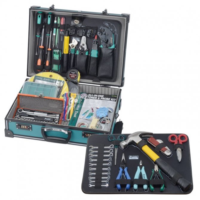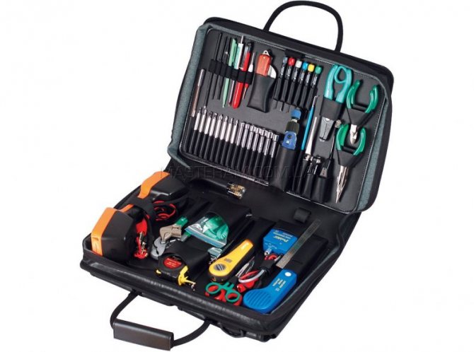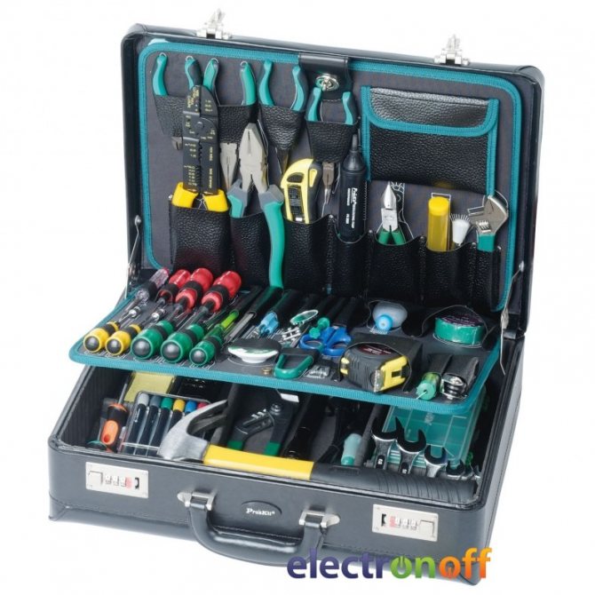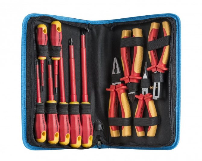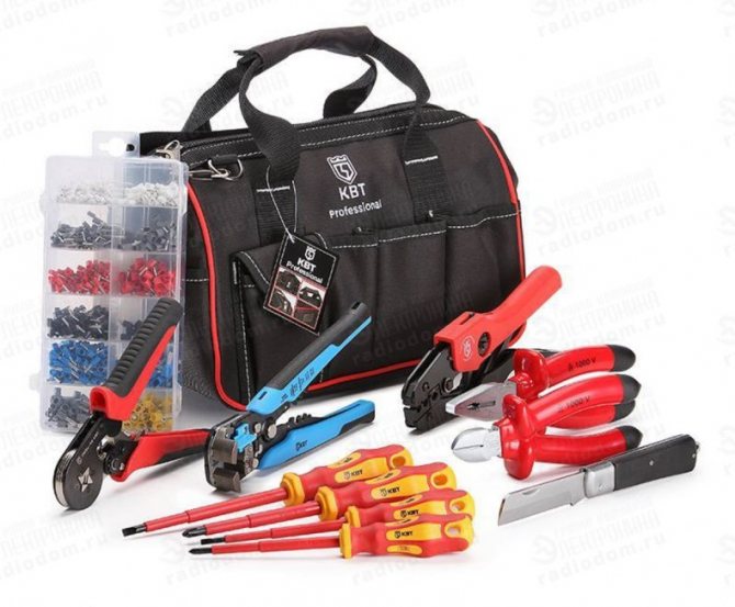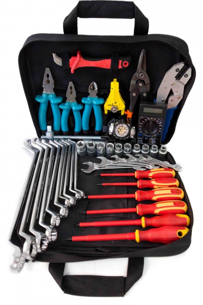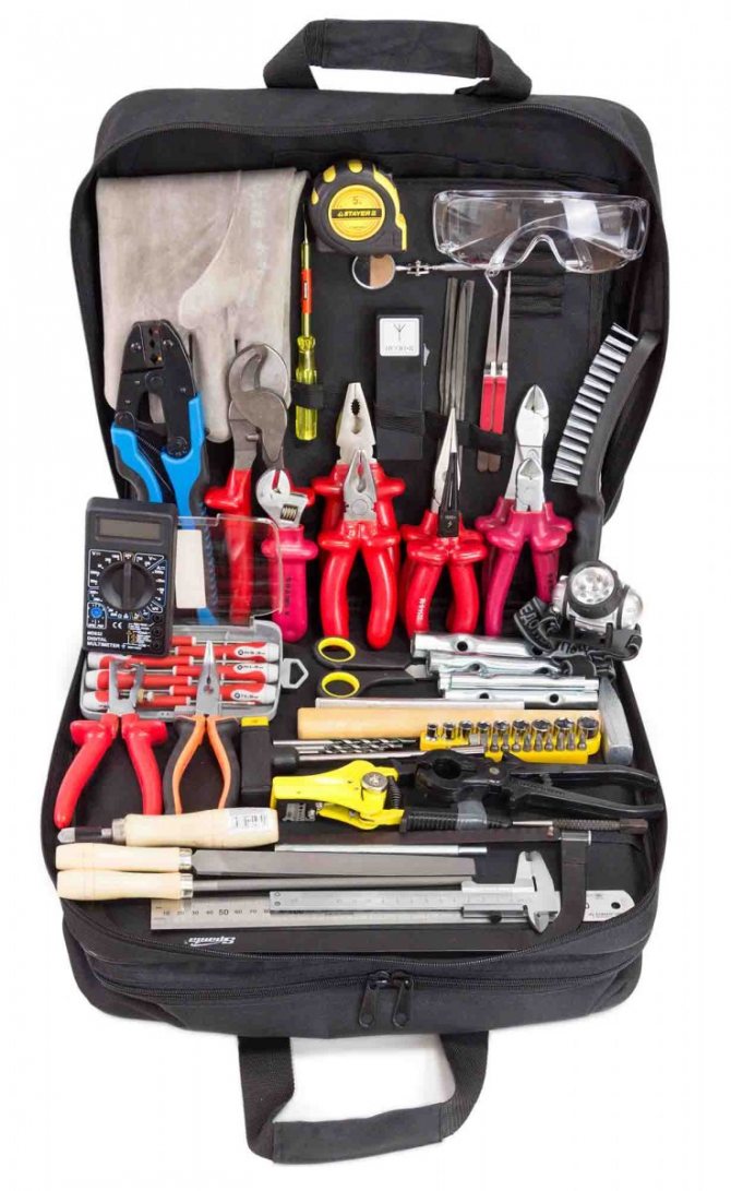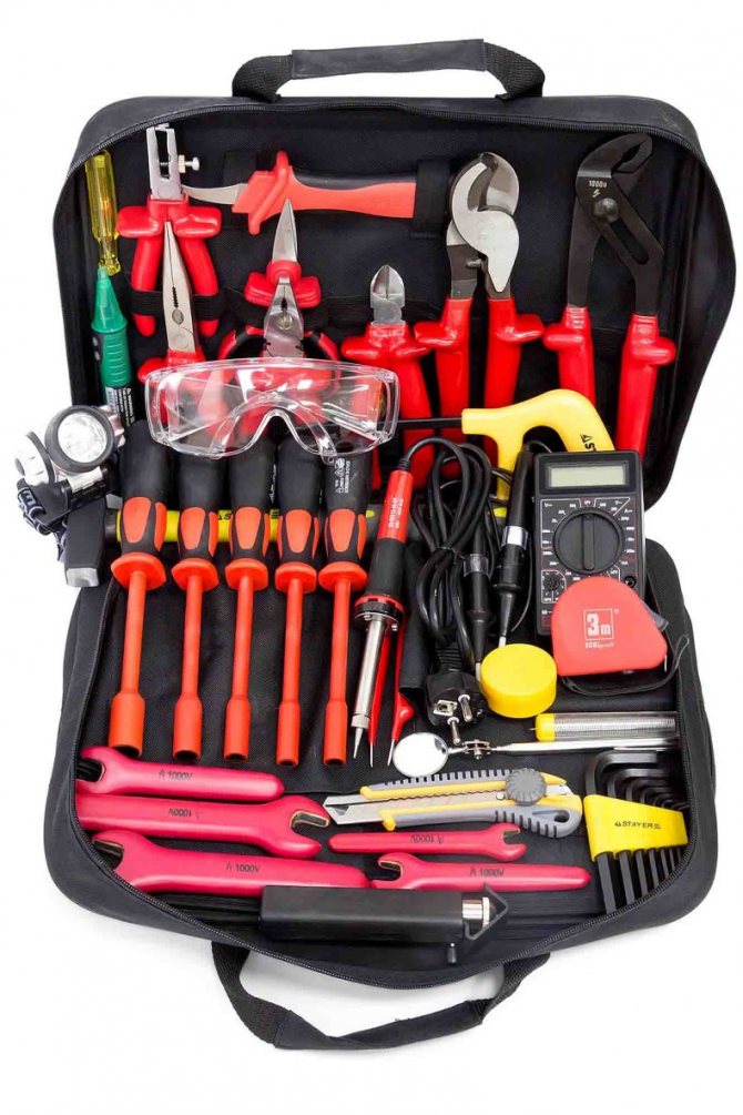 Современные наборы инструментов для монтажа электрики настолько разные, что остановиться на чём-то сложно. С одной стороны, не хочется платить за ненужное, с другой — не уверен, что может пригодиться в будущем. В любом случае, каждому электрику нужны бокорезы (кусачки), пассатижи, длинногубцы, инструмент для снятия изоляции (стриппер), набор диэлектрических отвёрток. И лучше, чтобы все это было удобно и компактно во что-то сложено для быстрого доступа и удобной транспортировки.