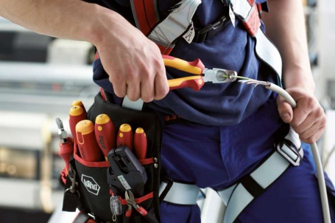 Зачастую для этого электрики используют специальные пояса с карманами под инструмент.