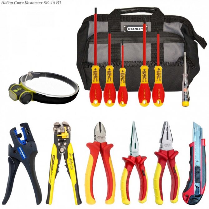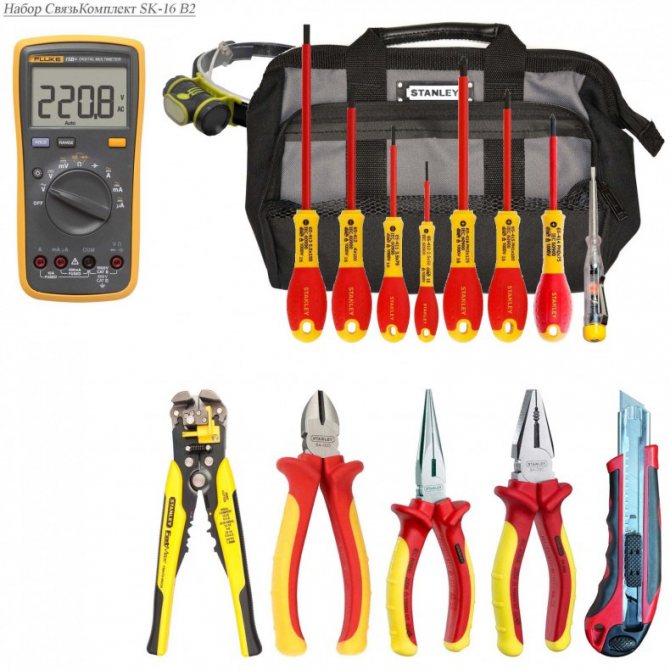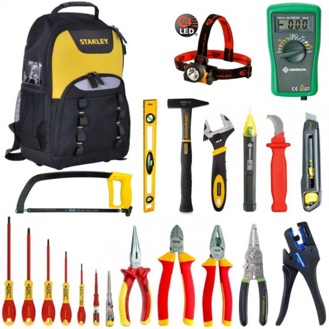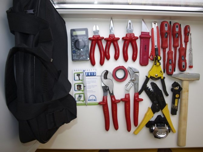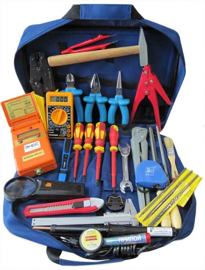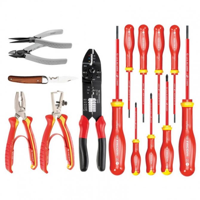 Инструмент электрика можно подразделить на основной и вспомогательный.