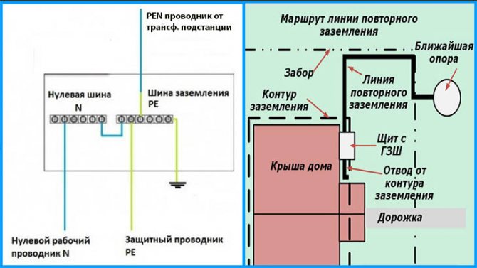 Если естественные заземлители отсутствуют, то монтируется искусственное заземление и соединяется с шиной PE, к которой уже подключен PEN проводник.