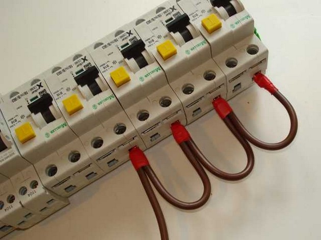 Если возникла необходимость подключить несколько автоматов стоящих в одном ряду от одного источника (провода) для этой цели как невозможно лучше подойдет гребенчатая шина. Но такие шины не всегда есть под рукой. Как объединить несколько групповых автоматов в таком случае? Любой электрик, отвечая на этот вопрос, скажет сделать самодельные перемычки из жил кабеля.