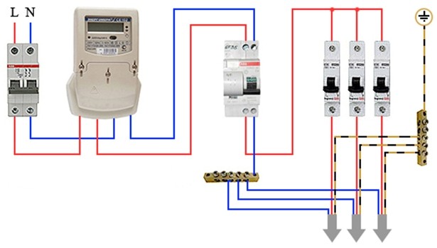 Поэтому лучше всего устанавливать УЗО сразу после вводного автомата, но перед пакетником, линия от которого будет идти непосредственно к потребителю. Это обеспечит надёжную защиту цепи от короткого замыкания, а пользователей — от нежелательного действия рабочего потенциала при попадании фазного провода на корпус бытового прибора.