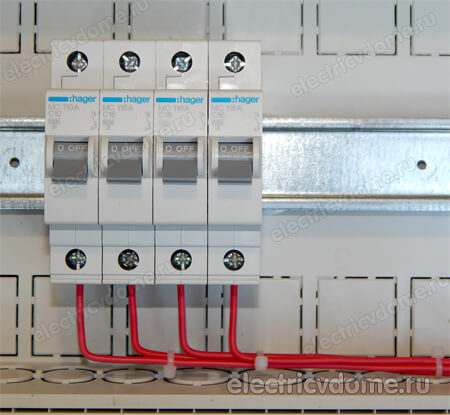 Автоматы устанавливаются в щитке по стандартному принципу – от большего к меньшему. Это значит, что сначала фиксируют автомат с двумя полюсами, а только потом с одним. После чего следуют остальные устройства с меньшей мощностью.