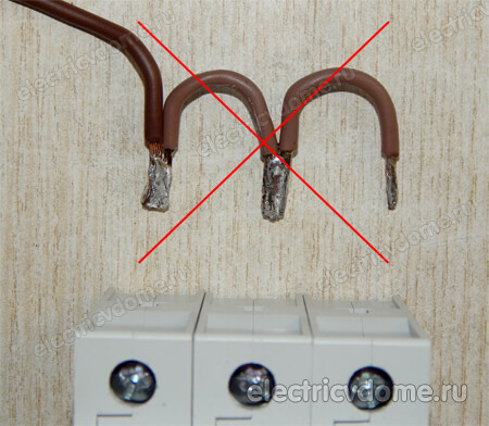 Основная ошибка, которую допускают новички в этом плане, подключают многожильный провод к автомату без оконцевания. Если обжать голый многожильный провод как он есть то при затягивании жилки передавливаются и обламываются, а это приводит к потере сечения и ухудшению контакта.