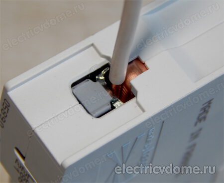 - В верхний зажимной контакт устанавливается нулевой провод.