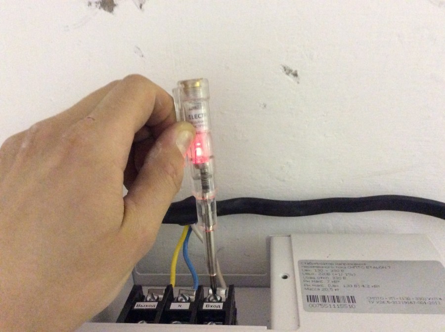 Шаг 3. Затем необходимо взять отвертку-индикатор и поочередно провести проверку контактов каждого энергопотребителя, чтобы убедиться в отсутствии напряжения.