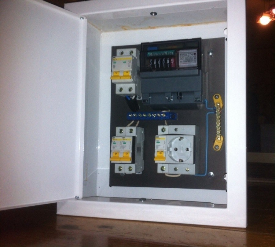 Если это простая система электросети, и вы не планируете выполнять монтаж защитной автоматики на группы энергопотребителей, то рекомендуется установить на входе дифференциальный автомат. Такая примитивная электросеть часто бывает в дачных домиках, где имеется несколько светильников и розеток, поэтому монтаж дифавтамата после электросчетчика позволит обеспечить безопасность системы.
