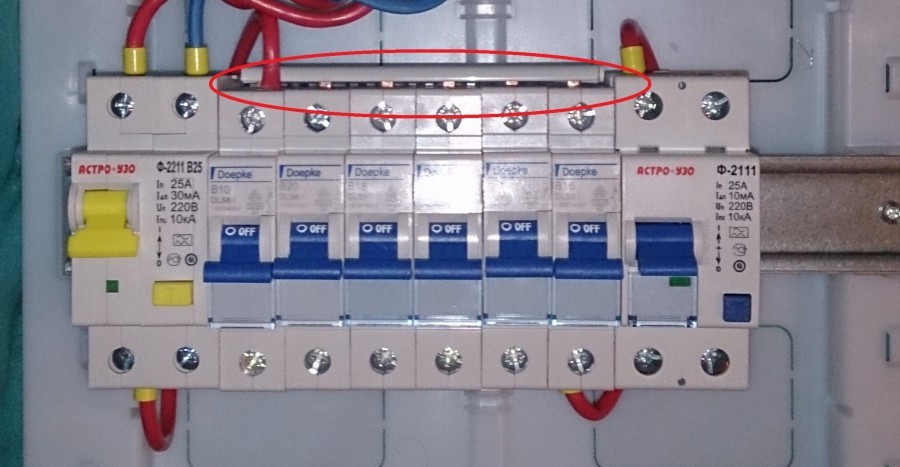 - При наличии некоторой автоматики, схема предполагает возможность подключения всех нейтральных проводов к одной перемычке. Только в случае с дифавтоматом делать это категорически запрещено. Иначе будет наблюдаться постоянное отключение питания. Поэтому, чтобы избежать сбоя работы, необходимо каждый контакт нейтрали подключать только к тому ответвлению, которое для него предназначается.