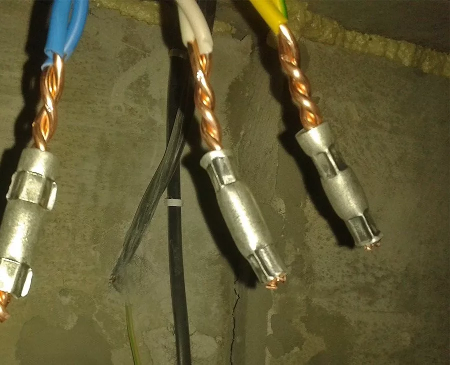 Шаг 5. С помощью бокорезов необходимо снять изоляционный слой на концах проводников, затем сделать опрессовку с помощью специальных гильз.