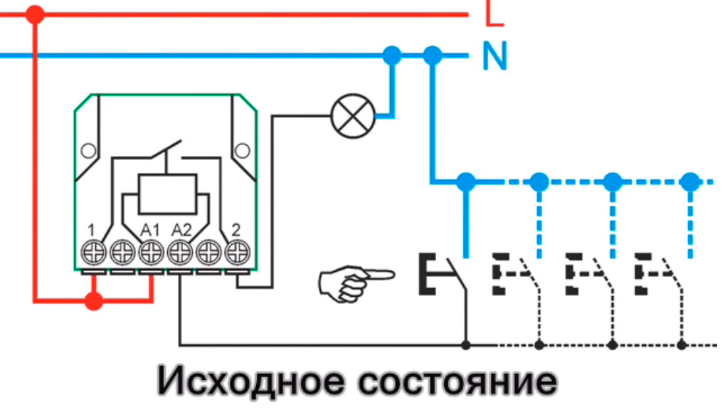 Однако статус положения контактов будет зависеть от конкретной модели. С памятью они или нет. Если память присутствует, то ранее включенные лампочки загорятся вновь. Там, где памяти нет, контакты просто разомкнутся.
