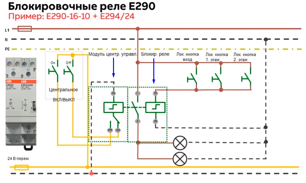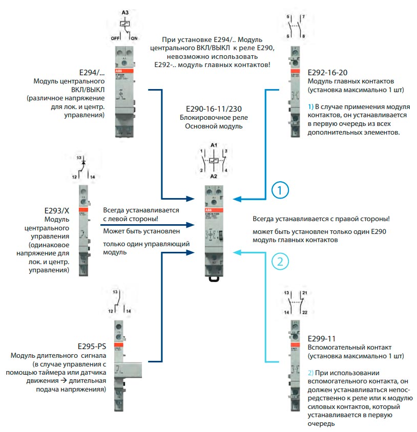 У имульсников ABB блок центрального управления можно докупить отдельно и присоединить его с левой стороны от реле E290.