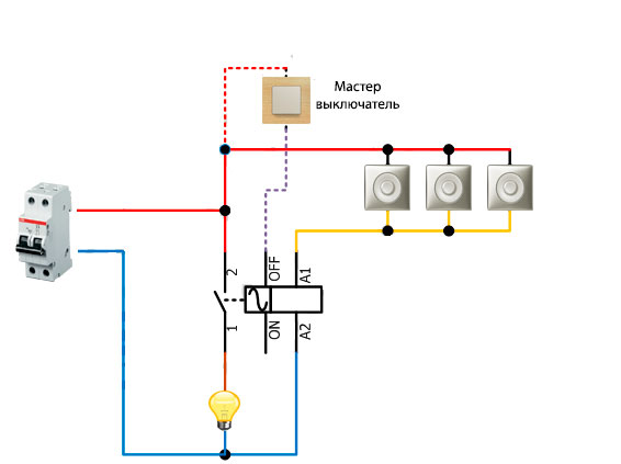 Они используются при сборке схемы с мастер кнопкой или мастер выключателем. То есть, выходя из дома, всего с одной кнопки вы централизованно можете отключить свет на всех этажах и во всех комнатах.