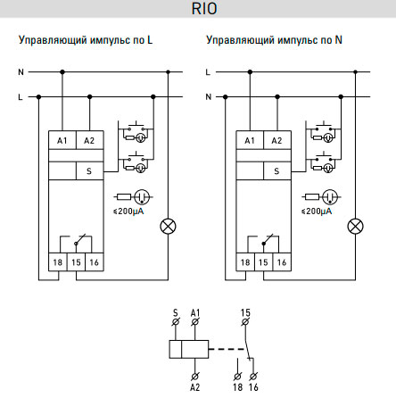 В некоторых моделях подавать управляющий импульс можно как через фазный проводник, так и через нулевой.