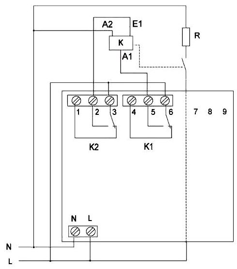 Если сила тока потребителя превышает параметры контактной группы, можно установить дополнительные контакторы и магнитные защелки. В этом случае, ограничитель выступает в роли управляющего коммутатора, а силовые линии размыкаются сторонними устройствами.