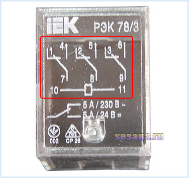 На некоторых типах реле производитель дополнительно нумерует выводы со стороны присоединений, что очень удобно.