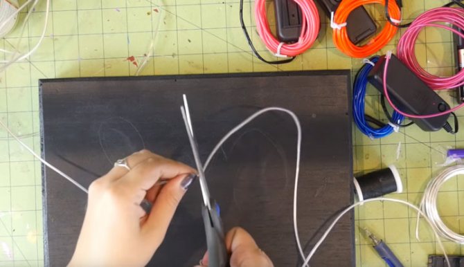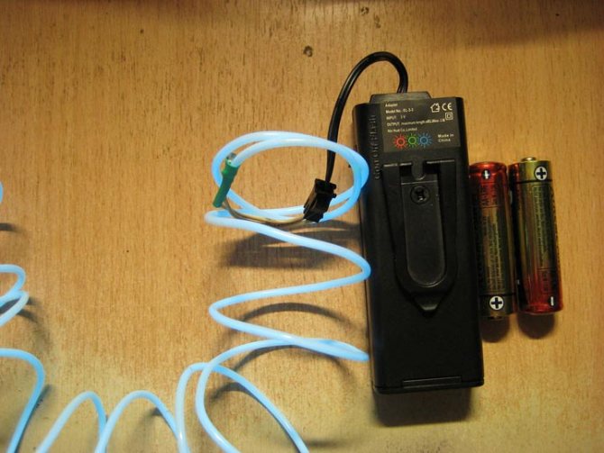Неоновый шнур даже можно завязать на узел, а резка производится обычными ножницами. Работает шнур по следующему принципу:
