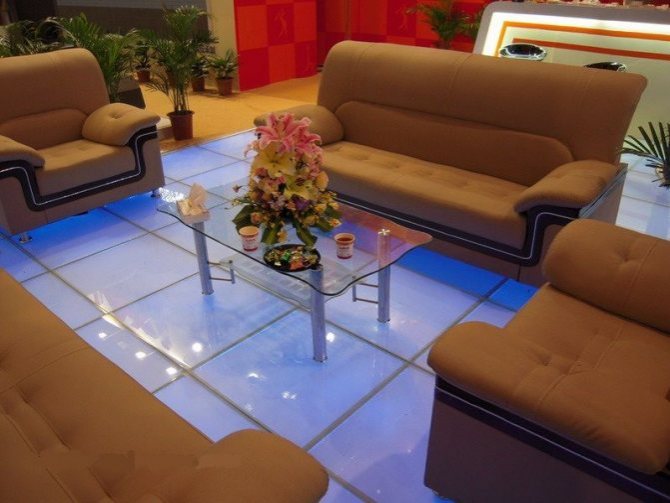 Поверхность модулей является достаточно стойкой к механическим воздействиям и воздействию влаги. Но все же в домашних условиях такой вариант напольной подсветки используется крайне редко.