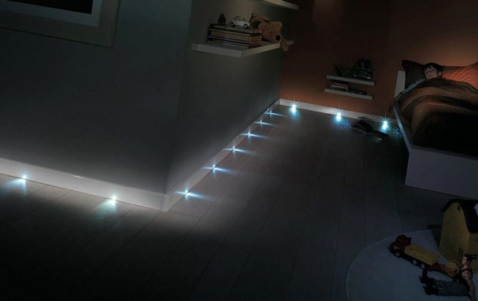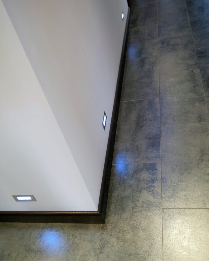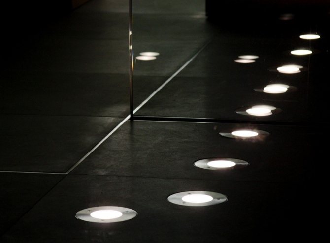 Использование точечных светильников делает процесс организации подсветки пола более простым и менее затратным.