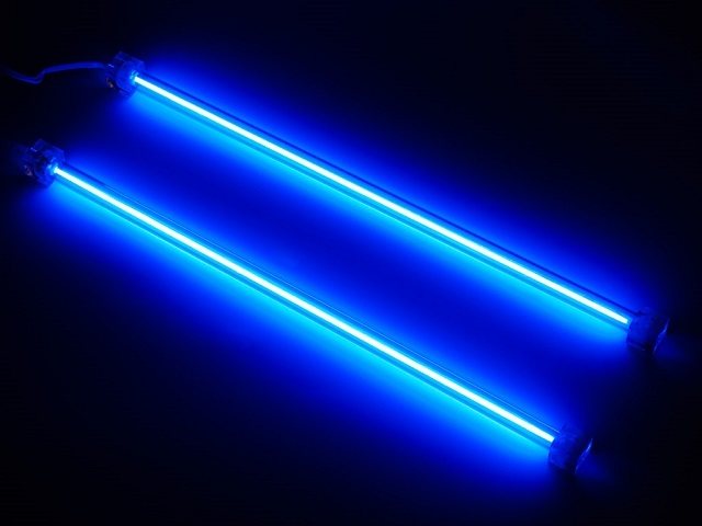 Существует несколько модификаций дюралайта. Он может быть двух или трехпроводной. Для домашнего использования и самостоятельно монтажа рекомендуют использовать первый тип. По стоимости эта разновидность диодной подсветки несколько превышает стоимость обычной ленты, однако использование дюралайта все же удобнее. При влажной уборке вам не нужно будет переживать, чтобы вода не попала не поверхность, даже если дюралайт установлен открытым способом. Повредить его достаточно сложно. Ну и возможность просто включить подсветку в розетку значительно облегчает весь процесс. От вас требуется лишь закрепить прибор в нужном месте. Можно сказать, что дюралайт – это нечто среднее, более усовершенствованное между лентой и неоновой трубкой.