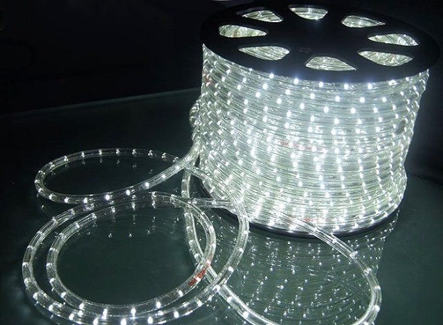 Еще одной разновидностью светодиодной ленты является светодиодный дюралайт. Принцип и комплектующие те же. Отличие заключается в том, что диоды защищены специальной гибкой трубкой из прозрачного ПВХ.