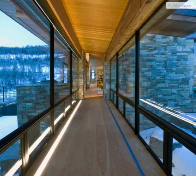 - Установка сквозного стеклянного окна доступна даже владельцам загородных домов и подойдет для двухуровневых жилых проектов.
