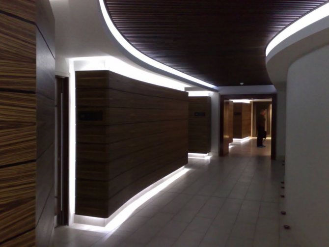Поэтому перед тем, как приступать к подборке осветительных приборов в это помещение, необходимо все тщательным образом продумать и взвесить. А для этого необходимо знать, какая же подсветка должна присутствовать в коридоре для создания в ней необходимого уровня освещения. Особенно это касается ситуации, когда вы решили сделать подсветку пола.