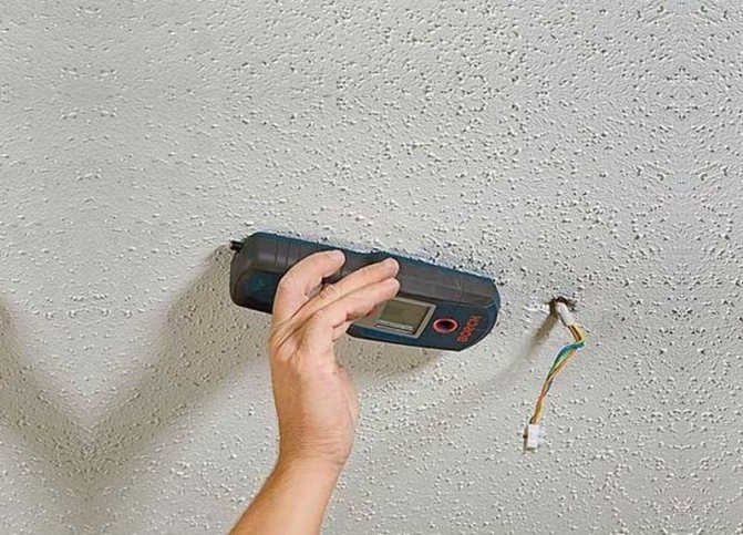 Хорошим решением станет недорогой бытовой прибор типа «Дятел» или «Поиск». Он с достаточной точностью укажет место, где под штукатуркой лежат провода. Если поиски не увенчались успехом, придется вызывать специалистов. Профессиональное оборудование легко справится с такой задачей.