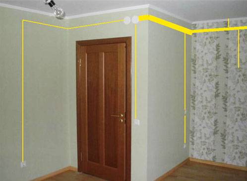 - Обычно линию тянут на расстоянии 15 см от потолка (либо пола), тут тоже не стоит вести различного рода работы.