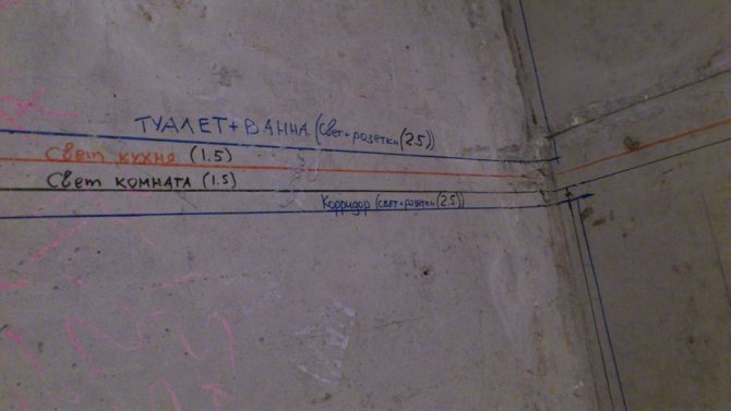 Разметка трассы электропроводки на стенах