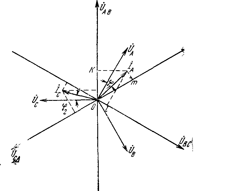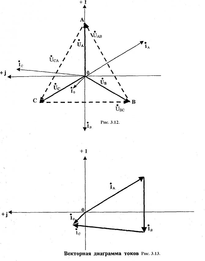 и векторные диаграммы, приведенные на рис. 1-16, б. Сравнивая диаграммы токов, приведенные на рис. 1-15, в и 1-16, б, можно сделать вывод, что векторы фазных токов, проходящих в проводах, соединяющих выводы обмоток низ-