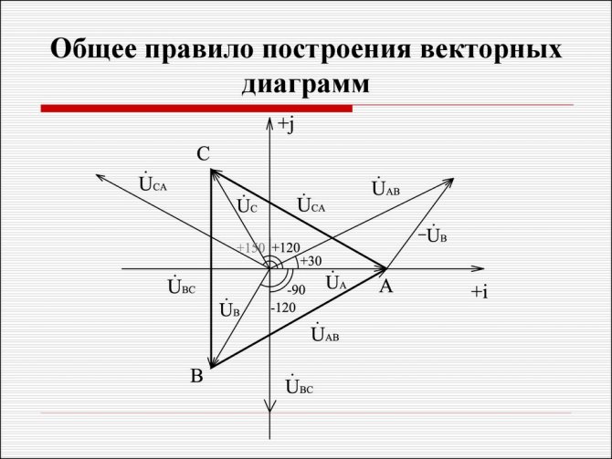 Начало отсчета времени выбирают произвольно, поэтому один из векторов диаграммы можно направить произвольно; остальные же нужно располагать с учетом сдвига фаз по отношению к первому или предыдущему вектору.