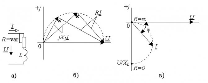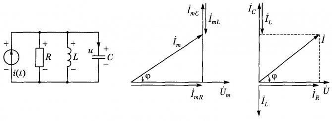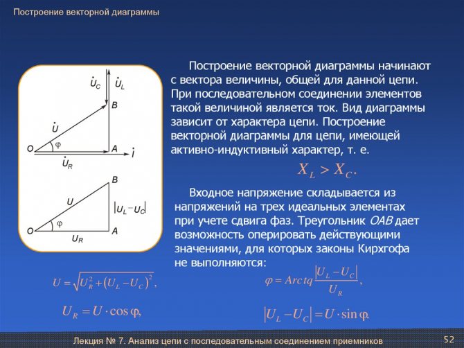 Поскольку в рассматриваемой цепи имеются активные и реактивные сопротивления, причем x L > x C , вектор тока отстает от вектора напряжения на угол :