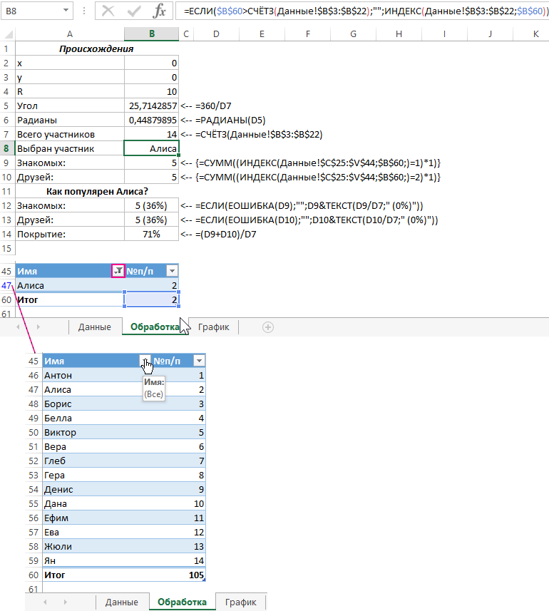 Копируем срез и лучевую диаграмму на отельный лист «ГРАФИК» и наслаждаемся готовым результатом: